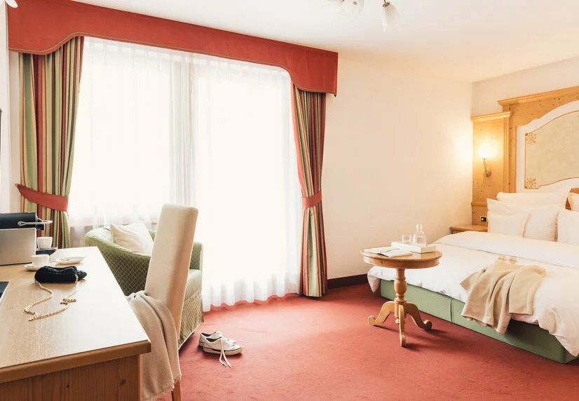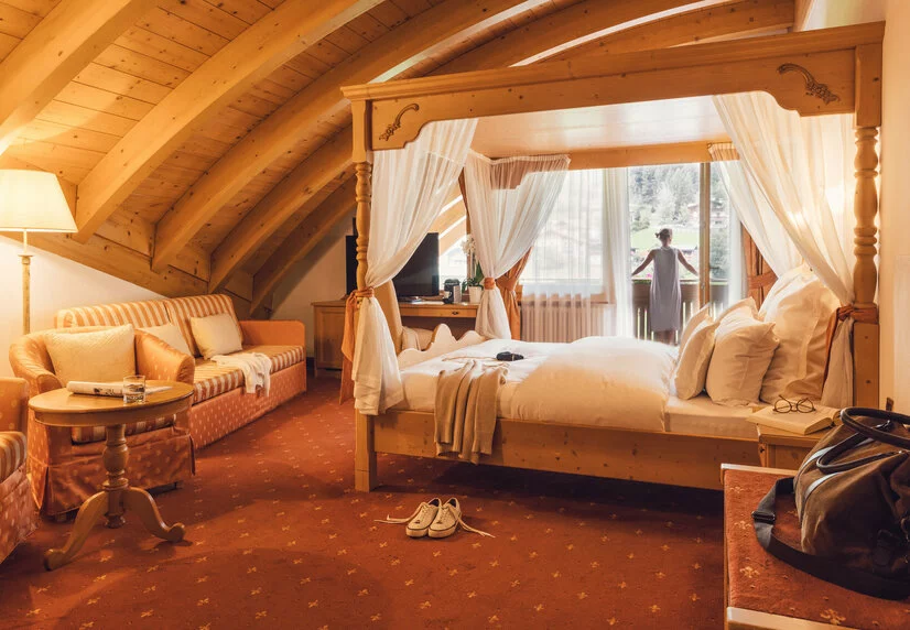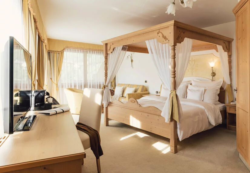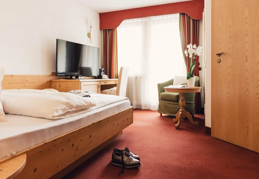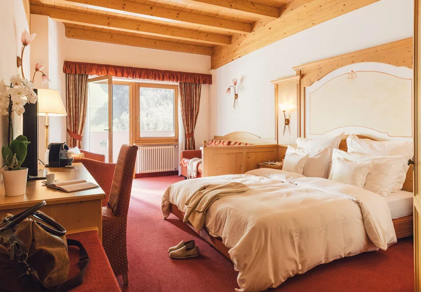 Trascorrete la vostra vacanza in Valle Aurina all’insegna del sole: nel nostro hotel a quattro stelle in Alto Adige sopra la valle, su una verde collina circondata da ruscelli. Ci siamo ispirati a questo – e progettato le nostre camere e suite con colori naturali e arredamento alpino, in modo che possiate godere di un’atmosfera accogliente e invitante fin dall’inizio.