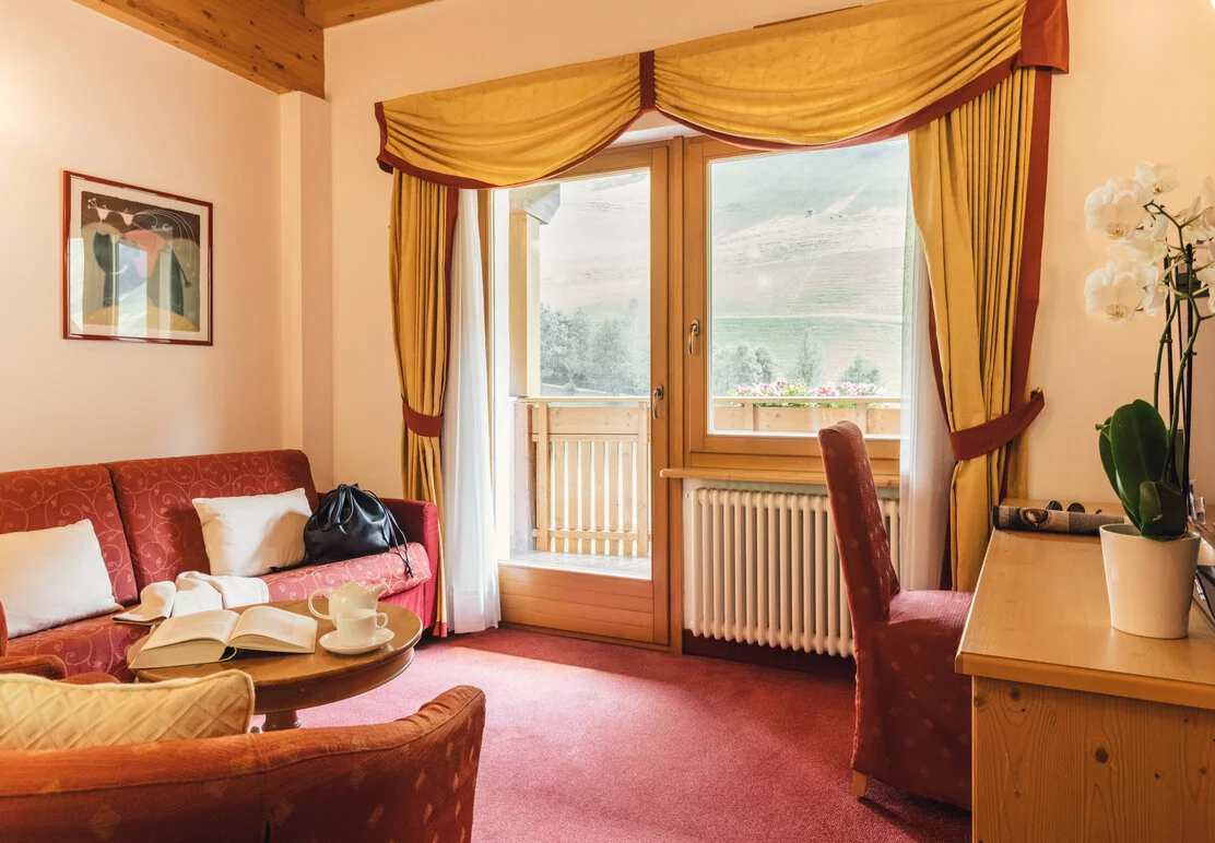 65 m² - Suiten zum Träumen, ganz in Rot gehalten, laden Sie zum besonderen Komfort ein. Mit einem Wohnraum, einem Schlafzimmer und einem Kinderzimmer bieten sie viel Platz. Ausstattung: großes Badezimmer mit Massagedusche, WC, Bidet und Whirlpool, BVLGARI White Tea Luxus Collection, Haarfön, Personenwaage, Schminkspiegel, Tel., Safe, Temperaturregelung, Rollos, Couch-Sitzgruppe, Flat Screen TV, kostenfreies LAN & WLAN, Radio, Kaffeemaschine, Minibar und Balkon.